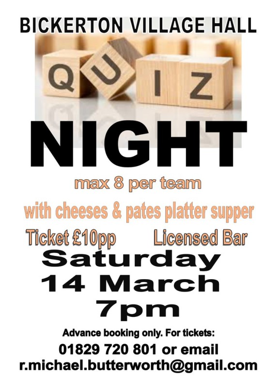 Our next Quiz Night will be on Sat March 14th 2026.